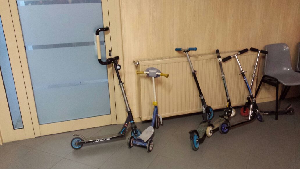 Les monitores, els monitors i tots tenim tanta pressa per a començar l’esplai que el dissabte passat molts van fer servir el patinet.
