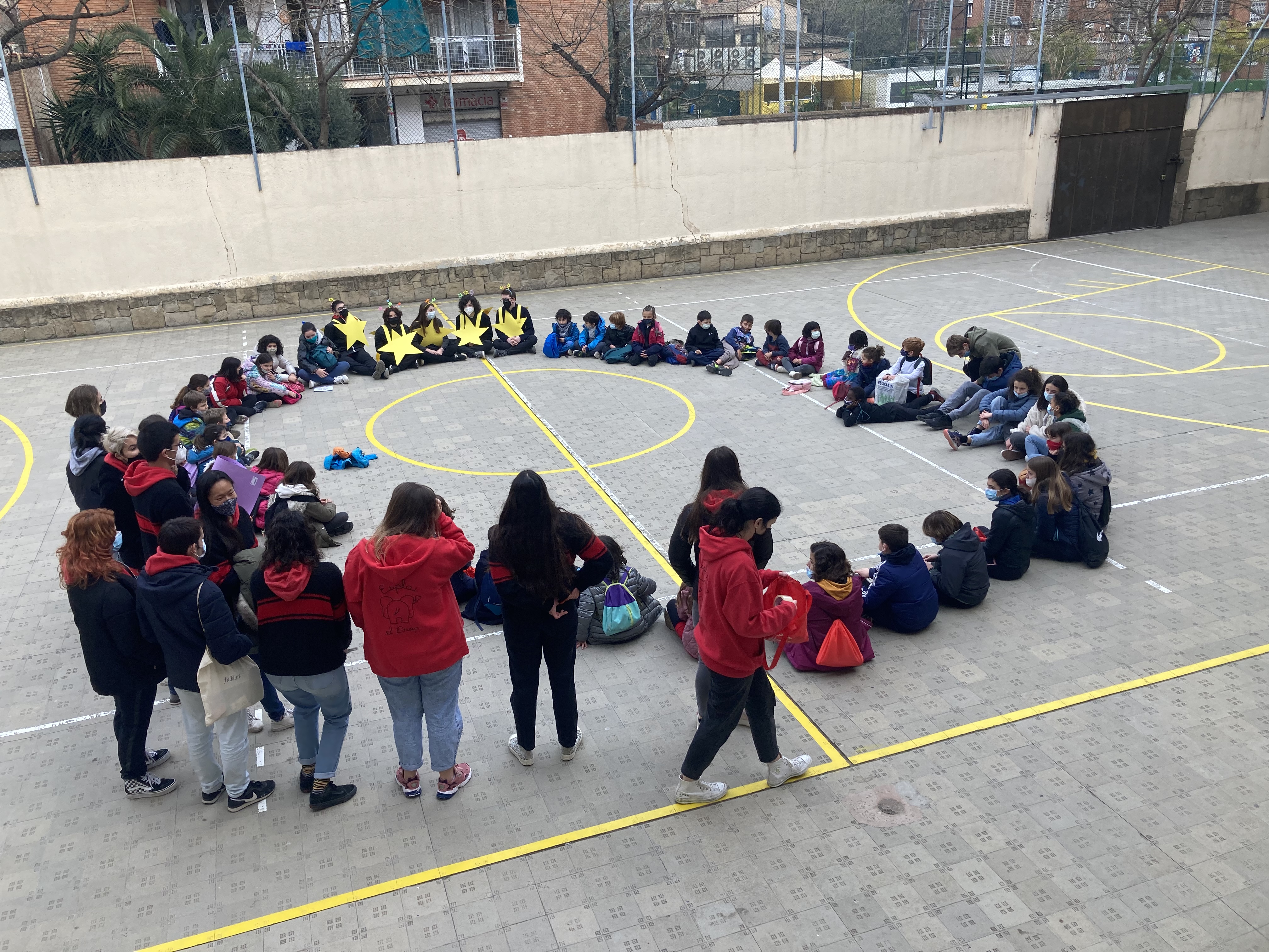 Aquest any ens hem vestit de diferents elements de l’espai i dissabte passat vam poder estrenar-los. Petits Petits i Petits Grans eren astronautes, Mitjans Petits constel·lacions, Mitjans Mitjans extraterrestres, Mitjans Grans planetes i els més grans estels!