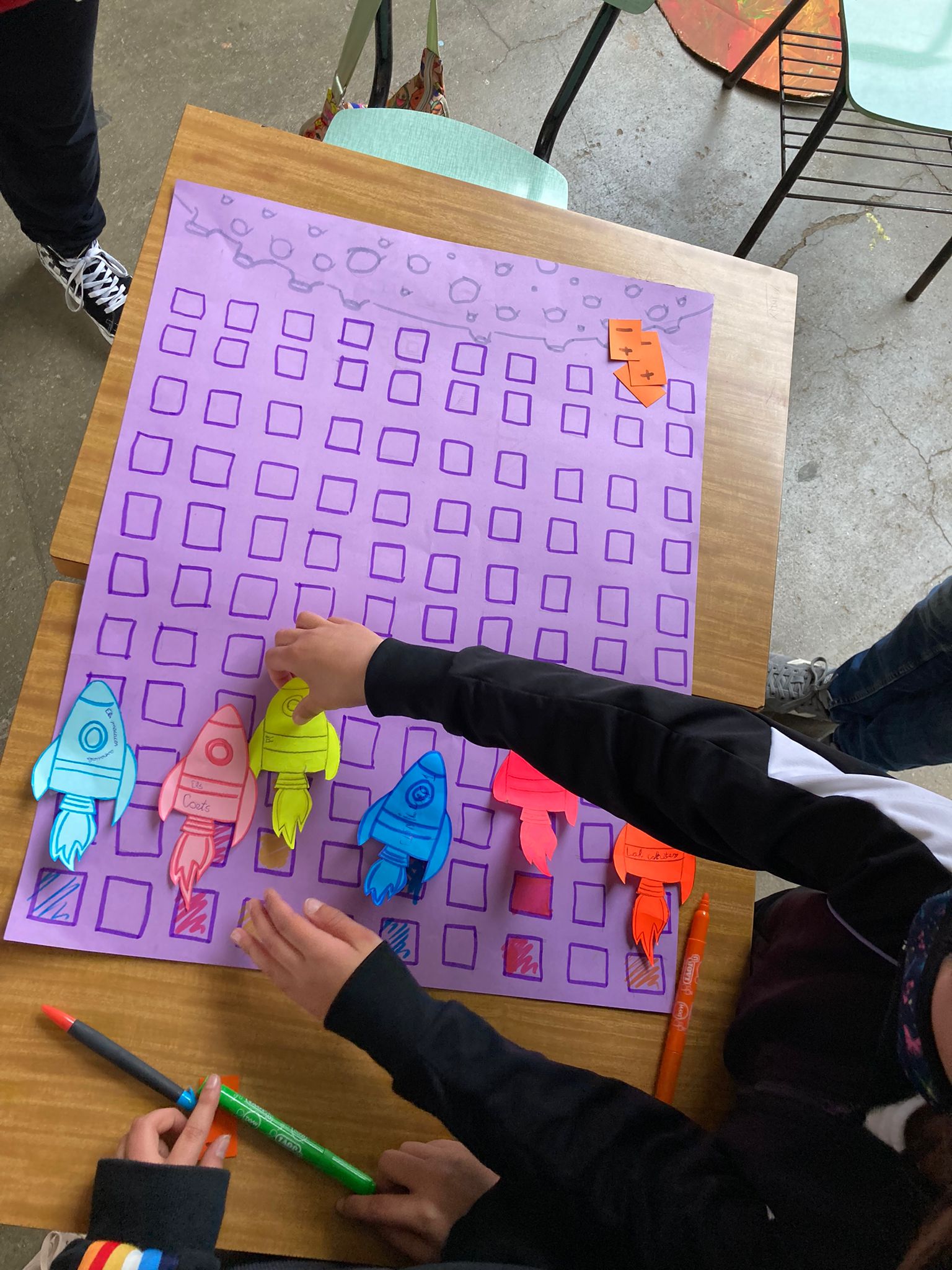 A la tarda ens vam trobar tots al pati de La Salle, petits i grans ens vam ajuntar per jugar i participar en la gimcana per aconseguir les piles que necessitàvem per poder fer funcionar el coet que ens portaria a la lluna!