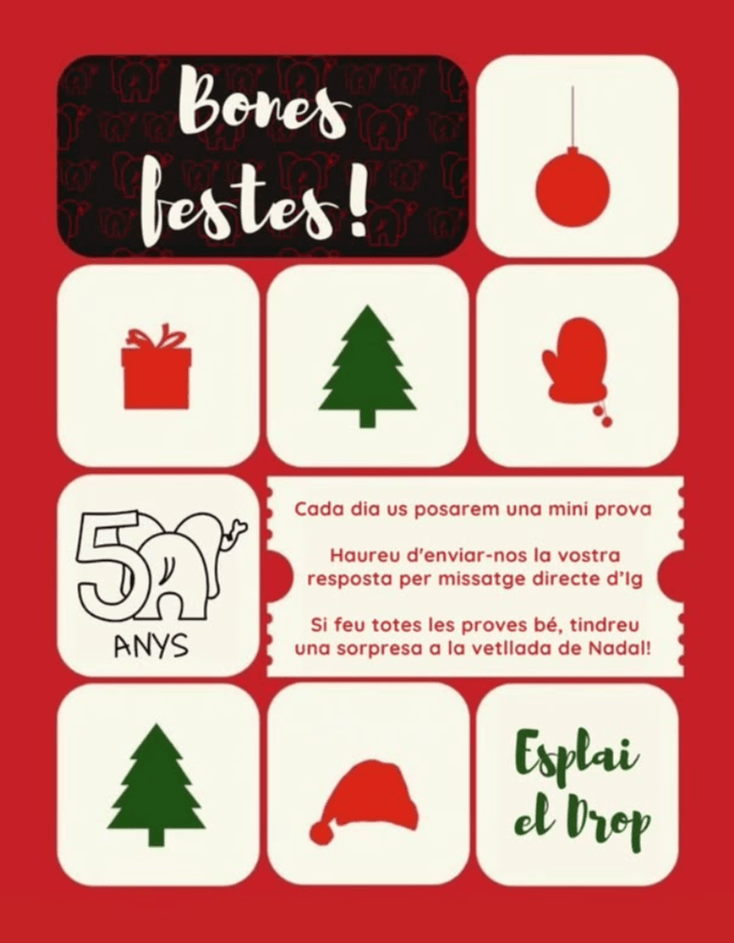 Aquest desembre, l’Instagram del Drop ha estat més actiu que mai! 📲✨ Cada dia hem compartit un petit repte perquè infants, joves, famílies i monitores poguessin posar a prova la seva creativitat, enginy i esperit d’esplai. Ha estat increïble veure com tothom s’hi ha bolcat amb tant entusiasme!